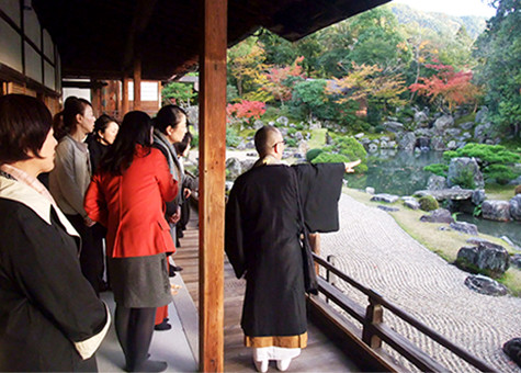 建物の大半が重要文化財である三宝院は、特別史跡・特別名勝となっている三宝院庭園があり豊臣秀吉が「醍醐の花見」に際し自ら基本設計をされたお庭でございます。お庭に置いてある石一つにも意味や理由があり、それらを感じとり考えることで、より心に深く響く経験になりました。霊宝館に納められている数多くの文化財のご説明を受け拝観させて戴くと、これまでの幾度となく直面されてきたあらゆる困難の歴史と大切に伝承されてきた歴史の重さが伝わります。仏様はどのような意味を持ち、どのように人々に大切にされてきたか。今日まで綺麗なお姿でいらっしゃる理由は、受け継ぐ人々が「仏様そのもの」だけではなく「心」と「思い」をしっかり受け継がれてきたからではないでしょうか。